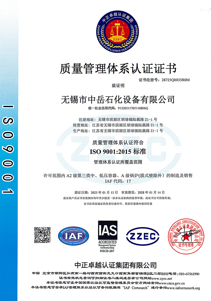 中岳石化下設(shè)四個(gè)控股子公司——無(wú)錫市中岳石化設(shè)備有限公司、無(wú)錫華凱環(huán)境工程有限公司、山西中岳實(shí)業(yè)有限公司、武漢中岳節(jié)能技術(shù)有限公司??偛课挥诮?jīng)濟(jì)發(fā)達(dá)的長(zhǎng)江三角洲,風(fēng)景秀麗的太湖之濱——無(wú)錫市胡埭工業(yè)園區(qū)。是專業(yè)生產(chǎn)石油、化工、醫(yī)藥、染料、冶金、環(huán)保、焦化等行業(yè)用成套設(shè)備的專業(yè)公司。公司銀行資信等級(jí)4A級(jí),公司注冊(cè)資金:3080萬(wàn),并獲得江蘇省高新技術(shù)企業(yè)、無(wú)錫換熱技術(shù)工程裝備中心證書,同時(shí)也是國(guó)內(nèi)外主要工程公司設(shè)計(jì)院的合格供應(yīng)商。